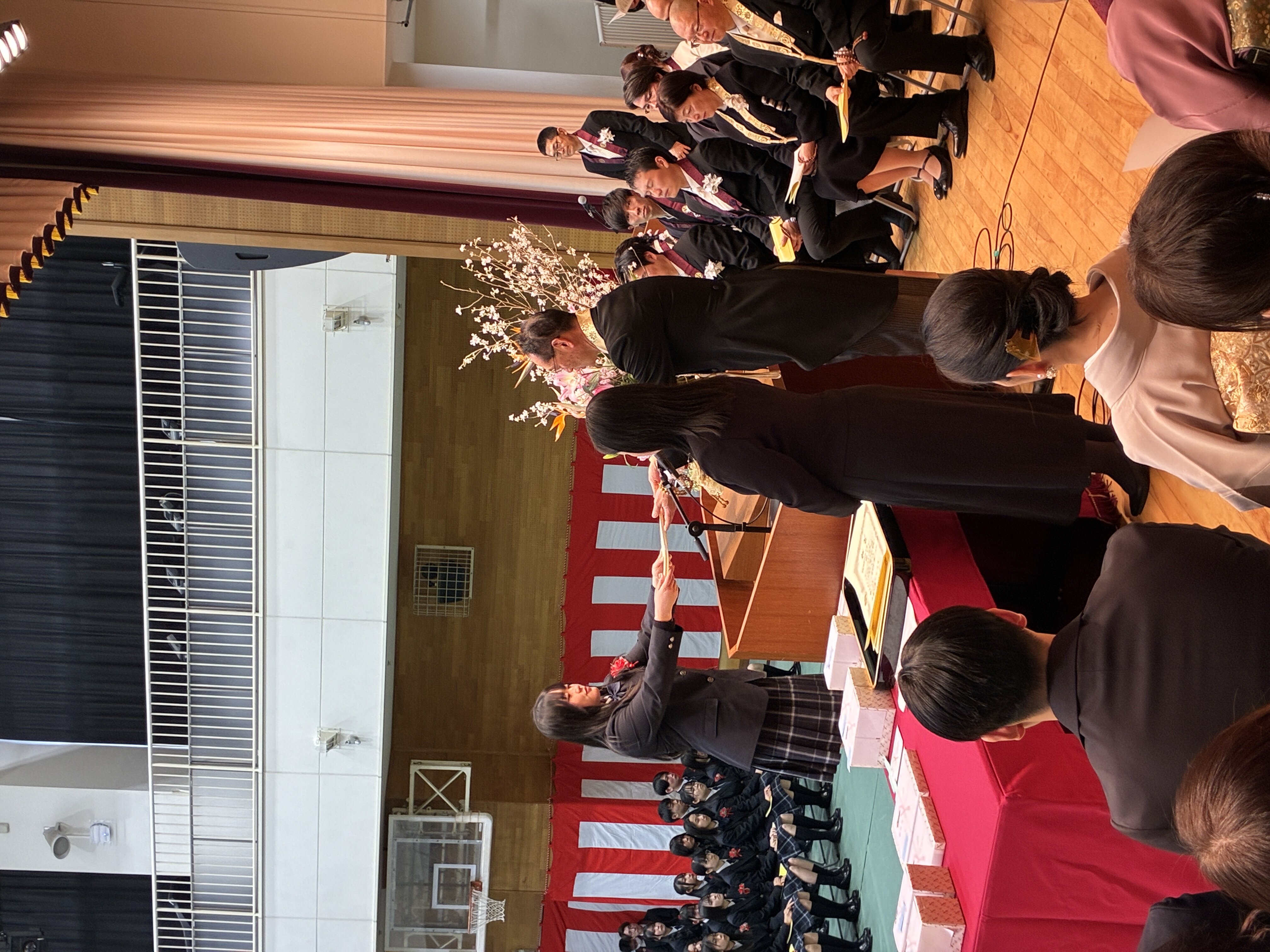壇上で卒業証書を受け取る各クラスの代表生徒たちの表情からは、達成感と寂しさを感じつつも未来に向けて新たな一歩を踏み出そうとする力強さが感じられました。